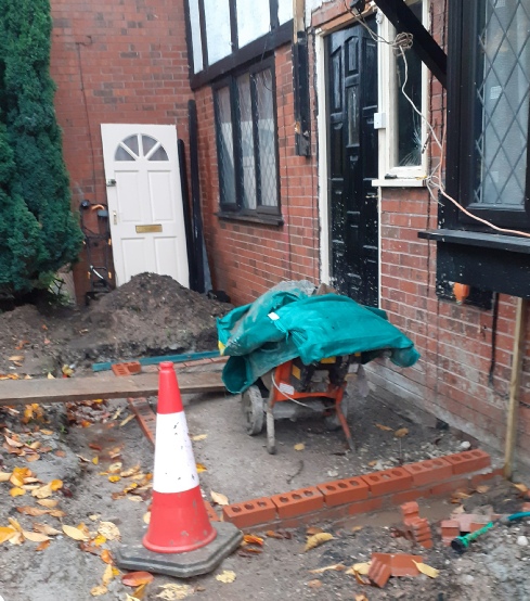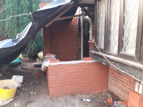 I eventually found another builder to complete my new porch. This family outfit worked in all weathers - having first erected a tarpaulin to keep the rain off. The job was completed almost within the 3 weeks (Davies had wanted another 6 weeks). There was a slight delay due to finding that Davies had damaged the original front door when removing it and it took a couple of days to find a replacement.
